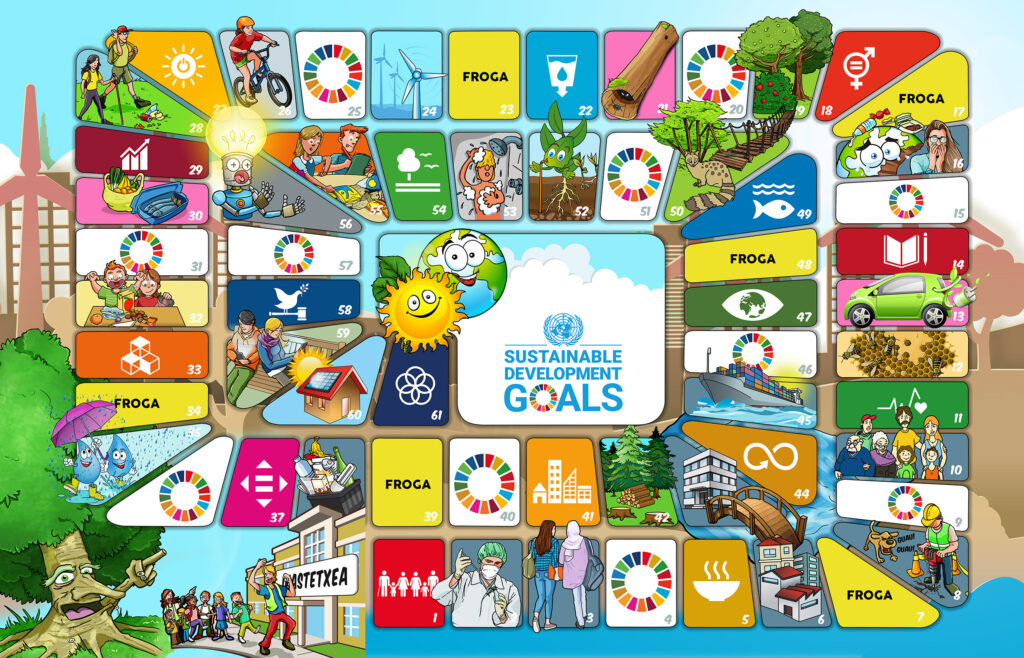 Antzararen jokoaren moduan jolasteko baliabidea duzue hemen. Tableroaren irudia inprimatuz, mahai jolas moduan erabili dezakezue. Beste aukera bat, Artelatzen jokoak dituen baliabideak eskatzea duzue: tableroa (1,5 x 1m), dado erraldoia, fitxa imantatuak, txartelak. Arauetan jokatzeko modua azalduta dago. Galdera eta froga proposamenak ere bertan dituzue. Hauek moldagarriak dira eta zuek egokitu ditzakezue.